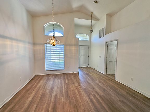 Wow, this is a super spacious 4-bedroom, 2-bath home! It's got a split floor plan with a formal living and dining room, which is perfect for entertaining. The kitchen is a dream with tons of cabinet storage and plenty of counter space. And the master bath? It's got a walk-in shower and a garden tub, so you can really unwind. Plus, it's close to schools, beaches, and shopping, which is awesome. There's also a large screened lanai area, high ceilings!