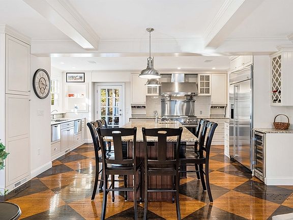 A bespoke jewel of a home steeped in historical value. The former 'Gardener's Cottage' for the Webster Estate in Old Chestnut Hill has been seamlessly blended into a larger footprint with contemporary additions including a gym, steam room, 5 fireplaces & a masterful 1900 bottle wine room. The large open Chef's kitchen boasts an oversized center island and stainless appliances. Multiple windows and French doors afford plenty of light and easy access to the expansive rear corner yard with pool, jacuzzi & Har-Tru tennis court. Choice living areas include a stunning sunroom and a more formal living room and dining area which opens dramatically off the main foyer. The second level primary suite offers a striking vaulted ceiling, grand stone fireplace, office with large balcony and a luxe spa bathroom. A family game room downstairs hosts an impressive home theatre. A charming Nanny's suite located above the garage with a private entrance completes this magical estate, moments to Longwood CC.