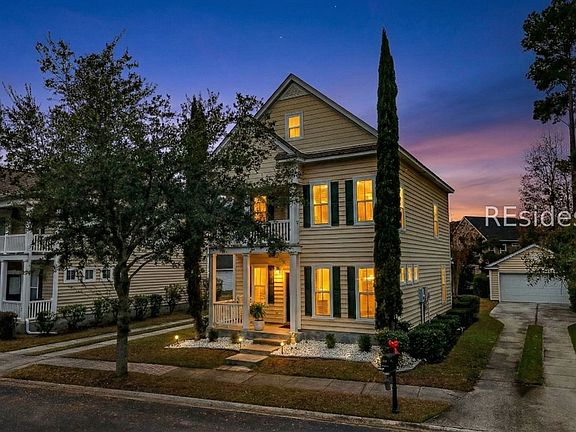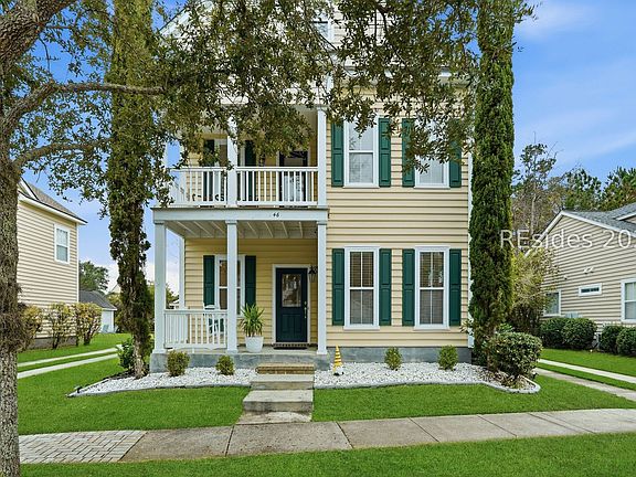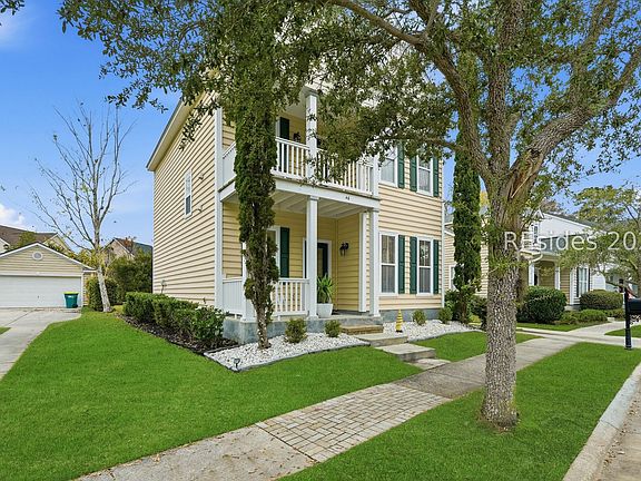 Seller to assist paying some of purchaser's closing costs!! This home showcases classic Southern curb appeal with a welcoming covered front porch and charming second-floor balcony-perfect for enjoying your morning coffee. Ideally zoned for sought-after River Ridge Academy (K-8) and May River High School. Inside, the thoughtfully designed layout features 3 bedrooms, 2.5 bathrooms, and a formal dining room on the main level that easily doubles as a flex space, home office, or additional living area. The spacious kitchen offers ample counter space and opens seamlessly to the family room, making it ideal for both everyday living and entertaining. Step outside to a screened lanai overlooking the backyard, providing a relaxing Lowcountry setting. Recent updates include a NEW 2025 roof and a Newer commercial-grade water heater. The detached two-car garage adds valuable flexibility, with potential-pending HOA approval-to build above the garage creating additional living area. In addition, the possibility to finish the attic space in the home. Community amenities include a pool, playground, pavilion, fitness center, pickleball, and tennis. Conveniently located in Bluffton with easy access to shopping, dining, Hilton Head Island beaches, and Savannah, this home offers comfort, flexibility, and an excellent location.