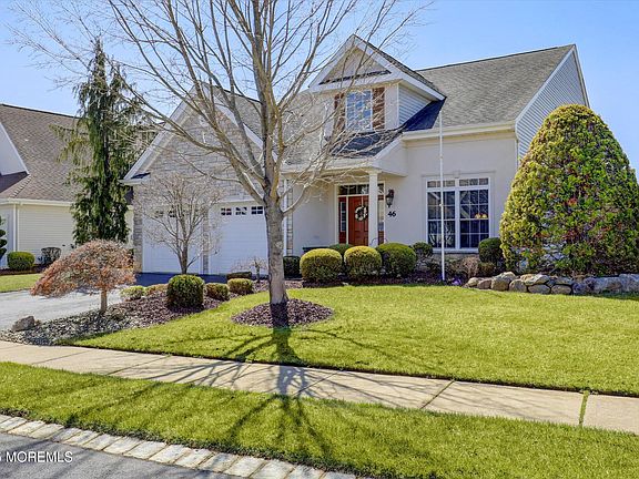 This stunning home is located on a spacious corner lot with a charming full stone front. Upon entering, you're greeted by a dramatic entry foyer with upgraded hardwood floors that extend throughout the main living areas. The gourmet kitchen is a chef's dream, complemented by an eat-in kitchen & a cozy gas fireplace in the family room.