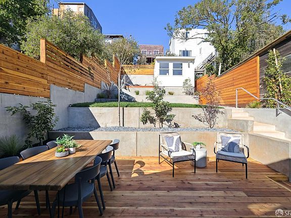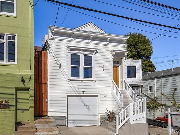 This radiant home in San Francisco's sunny Noe Valley neighborhood is located just half a block from the popular Sanchez Slow Street, where locals gather for coffee, stroll and bike. Welcome to 460 29th Street, a beautifully renovated Victorian single-family home featuring 4 bedrooms, 3 full baths, and a seamless blend of indoor-outdoor living. The home's thoughtful design offers an abundance of natural light, with exceptional flow and function. The main level serves as the centerpiece, boasting an expansive great room perfect for entertaining and relaxation and a separate media room/bedroom with en-suite bath. A chef's kitchen is equipped with high-end appliances, custom cabinetry, and an island, adjacent to a dining area that connects effortlessly to a generous living room. French doors lead to a large deck and tiered garden, with a fully-plumbed room situated atop the gardenideal for an office or quiet retreat. Vaulted ceilings and rich wood accents create an artful ambiance, framing the natural light and sky throughout the home. Upstairs, there are 2 bedrooms, a full bath, and an office nook offering eastern views. The lower level is home to a tranquil primary suite, complete with a wet bar and patio. Highlights include a one-car garage and a new high-efficiency HVAC system.