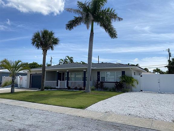 Beautifully updated Beach House with incredible amenities just minutes from the beach. When arriving, you'll notice a large covered front porch, ready for your morning coffee and conversation with the neighbors. Upon entering the inside, you'll step into the oversized living area and open concept into the thoughtfully designed kitchen, complete with full size island. It all looks onto the huge glass windows and out to the screened in patio complete with heated plunge pool. Just passed the dining area there is a bonus open office area, with full size cabinets and built in desk. The two large bedrooms are complimented by 2 separate bathrooms, completely updated with exquisite marble tile and solid wood vanities. The kitchen has solid wood cabinetry and Himalayan Onyx exotic countertops complimented by stainless appliances. Additionally, there is a bonus room large enough for a 3rd bedroom, office or game room. There is also a tankless water heater, full laundry room with stackable appliances, and water softener. Rooftop solar panels keep the electric bill under $200 on average in the summer and virtually free in the winter. There is also garage space for storage along with two new outdoor sheds built with flooring providing over 300 sq ft of total storage. Additionally, a second drive has been installed along with a privacy fence with 12 foot gates to allow the largest of boat, rv, or trailer storage on the side of the home. Even with all of this, there is still plenty of yard with turf grass complimented by a fire-pit area in the shell. The professional designed landscaping is all palm trees surrounding the entire back yard as well as the front with its own irrigation system. Enjoy your tour and thank you for looking!