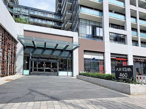 The Axiom Penthouse Corner Suite! 2 Bedroom 2 Bathroom + Paking Overlooking Manificient South West Waterfront And City Views! Featurig 10 Ft Floor To Ceiling Windows, Hardwood Floors Throughout, European Style Kitchen, Quartz Countertop, Backslash, Large Living Room Walking Out To Grand Balcony. Primary Bedroom With Large Walk In Closet, 4 Pcs Spa Like Ensuite. One Parking + One Bicycle Locker! 24 Hr Concierge, Steps To T.T.C, Toronto Metropolitian University, George Brown, Shopping, Cafes/Diners & Much More.