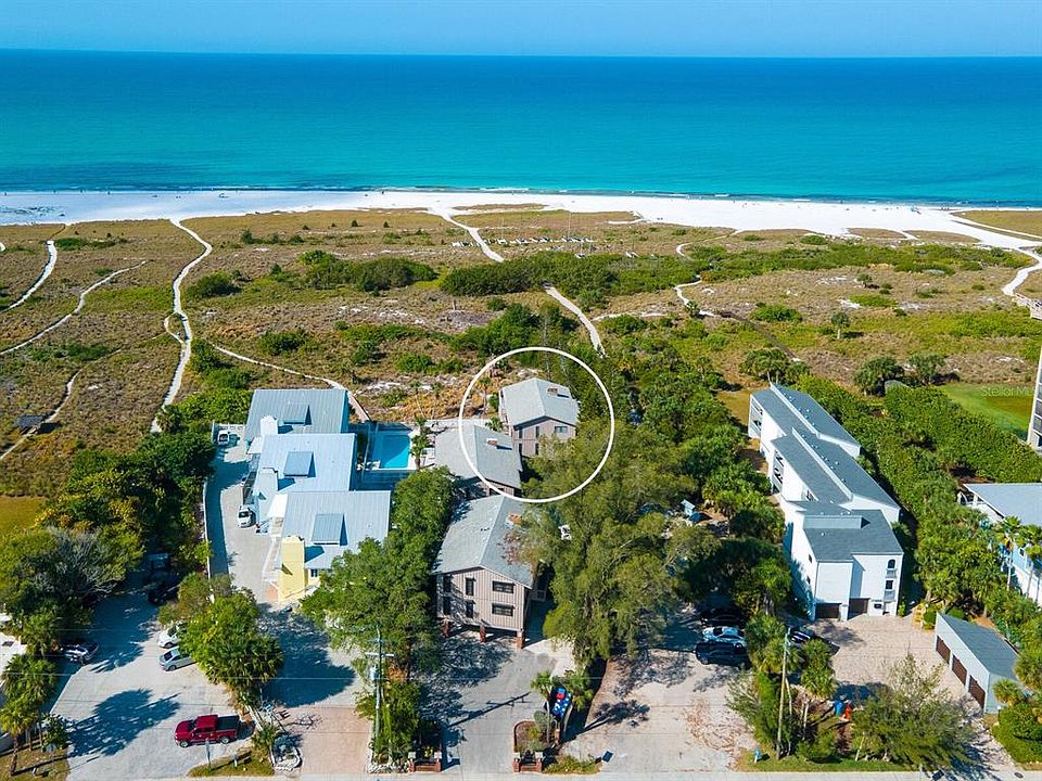 Only when you stand inside this residence do you feel the expansiveness of the Gulf and her beaches. This two bedroom unobstructed gulf/beachfront walk-up is definitely 1980's beloved architecture with wood decks and railings, soaring white painted cedar ceiling and stone fireplace, but that's where the 80's end. Beautifully appointed but definitely a relaxed beach vibe is consistent throughout the mostly renovated unit. HVAC was replaced in 2020. Master bathroom was renovated in 2019 as was the kitchen granite and glass backsplash. The floors were replaced including the subfloor and luxury vinyl in a weathered driftwood hue was installed in all rooms except the guest bedroom which is carpeted. Guest bathroom had updates as well. The third bathroom is located on the ground floor and convenient for being on the beach or at the pool. There is a third bedroom on the ground floor as well and is NON CONFORMING. The lower level or ground level has a shared area with an outdoor fireplace with tables and chairs and charcoal grills. The unit is being offered Turnkey Furnished. Spindrift is an enclave of six townhomes with two units in each building. This unit occupies the top floor of the unit closest to the beach. The shared pool is positioned just south of the building and you have a view of it from the balcony that is near the dining room. This open floor plan allows wide views from the living and dining rooms but also the kitchen which is in the center of the house facing the living/dining rooms and the wall of sliding glass doors. Bedrooms are situated on the east side of the unit along with the second bathroom. This is a rare opportunity as the owners of Spindrift Condominiums rarely put their units up for sale. The fireplace isn't warranted as it has never been used. Pets are permitted without an restrictions. Unit is being offered as is.