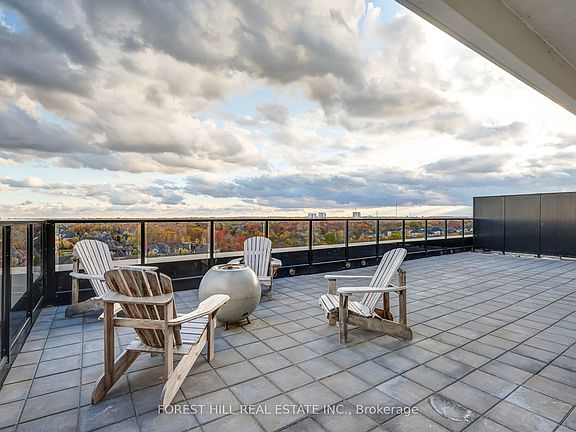 Luxury Penthouse Living at NorthLink. Experience elevated living in this one-of-a-kind penthouse suite at NorthLink - offering nearly 1,800 sq ft of sophisticated interior space and an extraordinary wrap-around terrace of almost 1,000 sq ft with breathtaking panoramic views over the lovely Forest City. Flooded with natural light through floor-to-ceiling windows, this 3-bedroom, 2-bath residence combines refined finishes with comfort and functionality. The chef's kitchen features custom cabinetry, quartz countertops, a full KitchenAid appliance package (including dual wall ovens and wine fridge), and an oversized island perfect for entertaining. The primary suite offers stunning views, a large walk-in closet with a custom closet system, a spa-inspired ensuite with heated floors, double vanity and a glass-enclosed shower. Two additional bedrooms provide flexibility for guests, a home office, or den. Enjoy rich engineered hardwood floors, custom storage, in-suite laundry, and two premium underground parking spaces - plus a large private locker. Residents enjoy access to exceptional on-site amenities: pickleball courts, a fitness centre, golf simulator, guest suite and scenic walking/bike paths. Located moments from Masonville's shopping, dining and the city's best recreation, this penthouse offers the ultimate in North London luxury living.