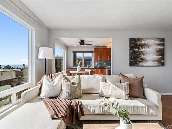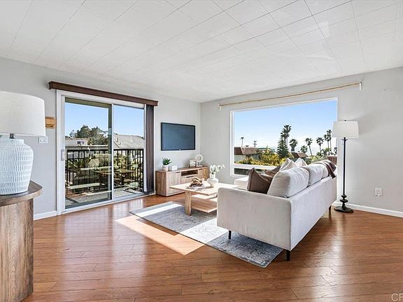 Welcome to your coastal dream condo, where sleek modern design meets breathtaking ocean views—experience living the ultimate beachside lifestyle in one of the area’s most desirable locations. Ideally positioned within walking distance to the beach, charming cafés, boutique shops, and the iconic Del Mar Village, this prime end-unit combines luxury living with everyday convenience. Two oversized living room windows, offering privacy and abundant natural light, frame the Pacific like a work of art—perfect for soaking in the ocean breeze and year-round sunsets from the comfort of your own home. Inside, you’ll find thoughtful updates and stylish touches throughout. The open-concept kitchen is upgraded with granite countertops, a stainless steel sink, and modern appliances—including a fridge, range, stove, and dishwasher. Soft-close cabinets feature clever storage solutions, from hidden drawers for silverware and towels to lazy Susans and a built-in spice organizer. A custom tile backsplash and sleek recessed LED lighting add a polished finish, while under-cabinet and cove lighting elevate the ambiance. The newly renovated bathroom features white cabinetry, quartz countertops, subway tile and designer hardware, while modern door and closet upgrades give the bedrooms a clean, streamlined look. Durable laminate flooring with extra padding adds comfort and warmth throughout, and three ceiling fans with programmable remotes and ocean breezes keep the space comfortable year-round. You’ll also appreciate a secure storage area—great for bikes, boards, or gear—and a dedicated parking space with plenty of visitor parking for friends. As part of a well-maintained community, you’ll enjoy access to a sparkling pool—ideal for relaxing after a beach day or hosting weekend get-togethers. Whether you’re commuting to the city, working remotely, or just craving a peaceful escape with a view, this condo delivers the perfect blend of convenience, comfort, and coastal style.