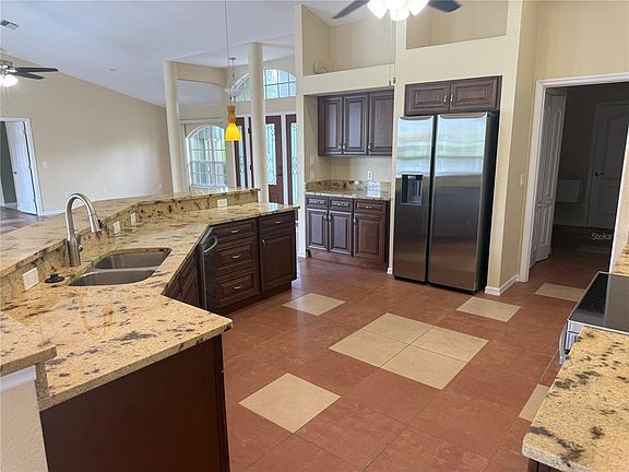 Four bedroom two bath two car garage LAKEFRONT Deep Creek pool home. Tile floors throughout except for guest bedrooms. New roof and new AC in 2023. Newer kitchen cabinets and granite counter tops. New appliances. Paver driveway. Open floor plan with vaulted ceilings and wonderful lake views...quiet deed end street. Sold "as is" with right to inspect.