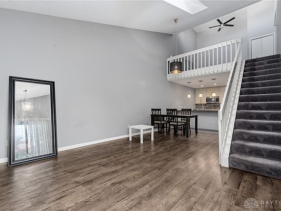 This 2 bedroom 2 full bath condo has an open floor plan with master bedroom on first floor. As you enter you will notice the laminate floors throughout the living room dining & a tiled kitchen with granite countertops, Master bedroom and laundry area. The living room has a patio door that leads to the private patio and a two sided wood burning fireplace. The master suite features dressing area and patio door to the private patio. Upstairs you will find a large study/family room w/tons of natural light(loft), a full bath and the second bedroom. a detached One Car garage rounds out this beautiful condo in a very desirable and convenient area of Centerville.
