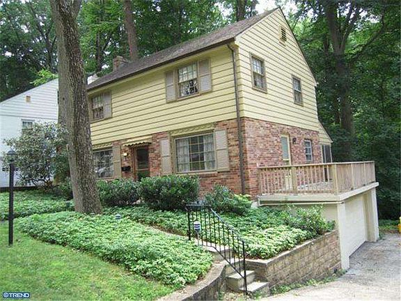 This 1536 square foot single family home has 3 bedrooms and 2.5 bathrooms. Wonderful, warm wood fireplace in living room. Full dining room plus eat-in kitchen. Chair rails and crown moulding throughout. Original hardwood floors on ground floor, carpeted bedrooms and new vinyl in kitchen, powder room and laundry area. Master bedroom has two walk-in closets. En suite master bath. Partial finished basement great for office, den, play room, etc. 2-car garage with plenty of extra room for storage. Kitchen has new granite counter top, dishwasher, cook-top stove, sink and garbage disposal. If you like outdoor living, comfortable screened-in rear deck plus open air side patio! Great location - close to schools, shopping, parks, entertainment, transportation, Blue Route. Wonderful neighbors and neighborhood! Beautiful setting. Wooded area directly behind property... great for nature walks! Recently painted inside and out. Desirable Springfield School District. Feel safe and secure living in one of Springfield Township's most appealing neighborhoods!Tenant pays all utilities;