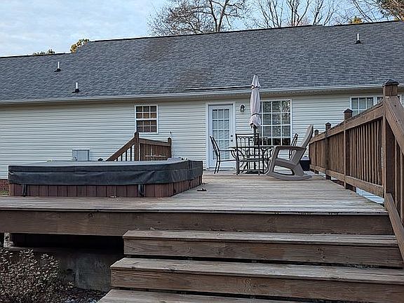 This home is on 1.2 acres. It has a 2 car garage, a deck in the backyard with a fire pit and a hot tub. If you have any questions feel free to contact me. Thank you so much for looking and have a great day