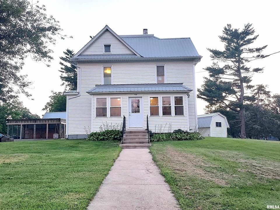 All newer vinyl siding, gutters, downspouts metal roof and white vinyl windows throughout this 3-4 bedroom and 2 full bath 2-story home. Sitting on a .4 acre lot, enjoy the view of spacious yard in the heart of town from the enclosed front porch. Don’t worry about internet as fiber optic services are available. The original 1-car garage is currently being used as a shed / workshop. Also plumbed for an outdoor wood furnace capability, an oil-fired boiler currently services the home. Spacious kitchen with built-in pantry cabinet. The main floor laundry room is adjacent to the full bathroom with a walk-in shower and the 4th bedroom, which does not have a closet. There are two different main floor rooms for either formal dining or den/office space. Full walkup unfinished attic with plenty of space for future finish and direct access to the widow’s perch. All appliances stay including the washer / dryer and a one year home warranty is being offered as well.