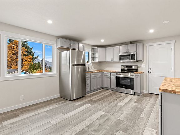 - Exterior features: $30 monthly pet rent per pet, Electricity, Garbage, Gas, LVP flooring throughout, Pets negotiable with $500 nonrefundable pet fee for the first pet and $250 for each additional pet, Tenants responsible for weeding, Utilities included in rent, View Type: Deck with beautiful view, Water, close to Eastmont Schools, close to parks, newly renovated, oven/range, oven/stove, private outdoor area that is fully fenced, tenants responsible for snow removal