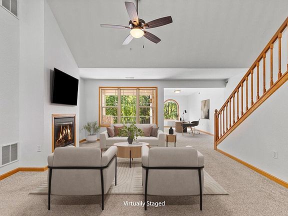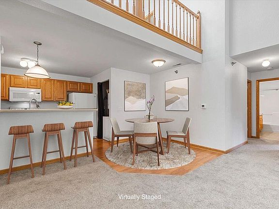 Spacious 2 Bedroom, 2 Bathroom second-floor condo with private entry and 1,649 sq ft! Features a bright open-concept layout with vaulted ceilings, inviting living room with gas fireplace, and a flex space with patio doors to a private 10x10 balcony. Eat-in kitchen with breakfast bar. Loft with skylights and a 15x5 walk-in closet ideal for an office, den, or family room. Primary suite includes vaulted ceiling, walk-in closet, and ensuite bath. In-unit laundry, 2 heated underground parking spaces, plus a private 3'8'' storage space. Updates include: roof (2025), water heater (2024), furnace and A/C (2022), carpet & paint (2022). Excellent location near schools, shopping, dining, freeway access, and walking distance to Regner Park. Pet friendly: 1 dog under 20 #'s (other restrictions apply).