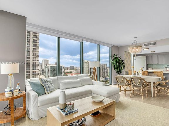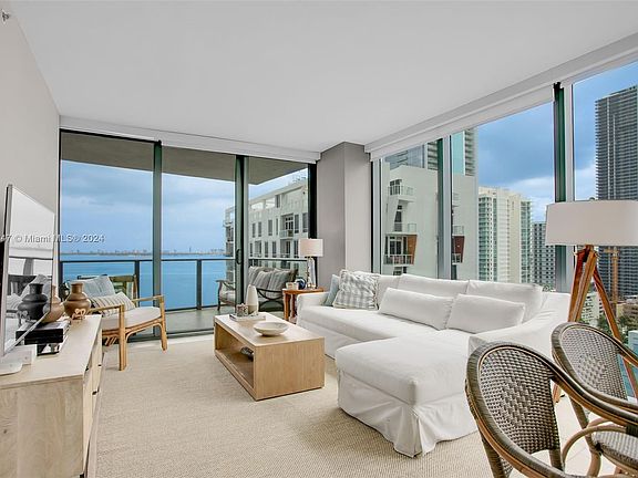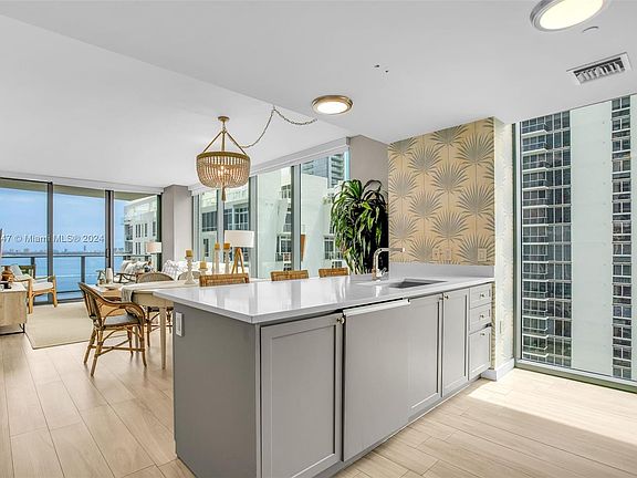 Luxurious 3-bedroom, 2.5-bathroom corner residence boasting panoramic views with balconies facing east and west. A private elevator opens directly into a spacious foyer, welcoming you into a meticulously renovated kitchen, electrical shades, Italian closets and elegant wallpaper throughout. Offers 2 assigned parking spots. The condominium has recently undergone a complete remodel of all common areas, offering an array of amenities including a bay-view pool, rejuvenating spa, state-of-the-art gym, two expansive club rooms, a private theater, and convenient EV chargers. HOA has full reserves. Designer furniture throughout promising a seamless transition into luxurious waterfront living.