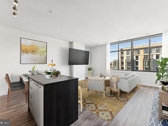 Modern Luxury with Panoramic City Views at 460NYA Welcome to Residence #1002 at 460 New York Ave NW—a stunning top-floor, light-filled condominium in the heart of Mount Vernon Triangle. This rarely available 1-bedroom, 1-bath home showcases soaring ceilings, wide-plank hardwood floors, and huge windows that frame sweeping views of the city skyline. You can see a panoramic views from the Georgetown Cathedral to the Basilica of the National Shrine of the Immaculate Conception. The open-concept layout is perfect for entertaining, with a chef’s kitchen featuring sleek European-style cabinetry, quartz countertops, a gas range, and premium stainless steel appliances. The moveable center kitchen island matches the cabinets and conveys with the unit. The spacious bedroom includes a large custom closet, while the spa-inspired bathroom offers a deep soaking tub and designer finishes. Additional conveniences include an in-unit washer and dryer, assigned garage parking space (#7F), and private storage (Space #7). At 460NYA, residents enjoy boutique living with professional management, a full-time concierge, and access to a stylish rooftop lounge with billiards, catering kitchen, and panoramic terrace views. The building is pet-friendly with no dog weight restrictions, and even offers a fenced pet area right outside the door. Perfectly situated on the corner of New York and L Street NW, this modern steel-and-glass landmark by Bozzuto Homes (delivered in 2015) puts you steps from the best of downtown DC—CityCenterDC, Safeway, Apple Store, Blagden Alley restaurants, Metro access (Yellow, Green, and Red Lines), and easy connections to I-395. Experience elevated city living at its finest—modern design, unmatched location, and amenities that make every day extraordinary.