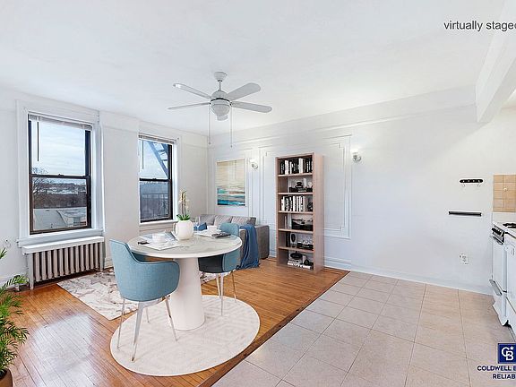 Fabulous one-bedroom co-op apartment in a post-war building in the center of Bay Ridge. Every room consists of large windows and is greeted with gleaming northern sunlight exposure. The bedroom is spacious and can accommodate a queen/king-size bed. Enjoy the open living, dining, and kitchen concept that offers plenty of cabinet space, a dishwasher, and a view of the city skyline! Other features include great closet space, high ceilings, and pristine maple hardwood flooring throughout. Building amenities include a fully equipped laundry room, secure intercom system, storage, and on-site super. Conveniently located near the Bay Ridge Avenue subway station, dining and shopping along 3rd, 4th, and 5th Avenues, parks, and everything Bay Ridge has to offer!