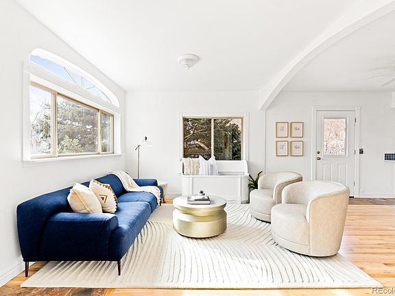 Classic charm melds with modern updates in this turn-of-the-century home. A front flagstone patio invites entry further inside to a thoughtful floorplan flanked by refinished maple hardwood flooring and fresh paint throughout. Generous natural light streams in through vast windows as curving archways and timeless trim work inspire nostalgic flair. A spacious living area flows into a dining room offering ample space for entertaining. Beaming w/ all-white cabinetry, a bright kitchen is complete w/ new stainless steel appliances and refreshed countertops. A primary bedroom offers outdoor access while a secondary bedroom presents versatile space. Unwind in a serene bath w/ a clawfoot tub and a new vanity. Nearby, a large laundry area offers space for an office nook and plentiful storage. Retreat outdoors to an expansive backyard featuring a carport w/ alley access, vibrant foliage w/ a majestic young oak, a variety of mature fruiting apple, pear, peach + plum trees along with season long color from perennial beds. Poised 1.5 blocks from Old Town Erie, an unmatched location affords proximity to local amenities such as the Erie Community Center, Community Park, Coal Creek Trail and upcoming redevelopment of Coal Creek Park.