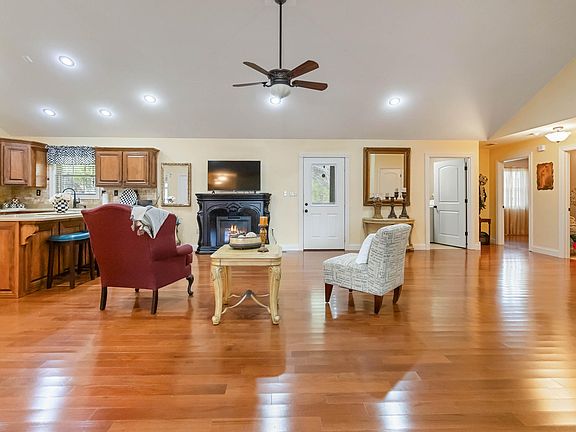 Welcome to your dream home! This charming, immaculate, custom brick home offers the perfect blend of comfort and convenience, nestled on 3 acres, featuring an open concept layout that flows seamlessly from room to room. With 3 spacious bedrooms and 2 full baths, including a large walk-in closet, every detail is designed for relaxation and style. The heart of the home boasts beautiful Corian countertops, a stylish tiled backsplash, an impressive great room, and cathedral ceilings. Step outside to your private oasis, complete with a heated inground pool and secure privacy fencing, or your screened-in back porch, both perfect for entertaining and unwinding after a long day. With a detached 2 car garage, you'll have plenty of space for vehicles and hobbies including a 24 ft worktable. A section of the property is fenced and can be used for livestock or your favorite pets. Just 10 minutes away from shopping, dining, and schools, you can experience the best of both worlds, modern living in a tranquil setting. Don't miss your chance to make this beautiful and peaceful property your own!