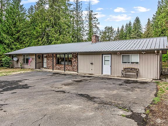 Don't miss this single level home with a shop on acreage! Sprawling 3 bed, two bath offers generous room sizes and privacy. Beautiful new custom kitchen with granite, wine bar, black stainless appliances, gas range, and farmhouse sink. Picture window and wood burning fireplace insert in the living room, french doors out to the patio from the dining room. Large utility room doubles as pantry space. Attached garage converted to a bonus room w/ separate entrance & rough 3/4 bath. Could also be a bonus room or hobby space! Patio w/ hot tub and greenhouse is fenced in, garden space beyond. Evergreen trees surround the home for a wooded setting. Detached 3 car shop w/ new roof. RV/boat carport. Lots of paved parking. Come call it home!