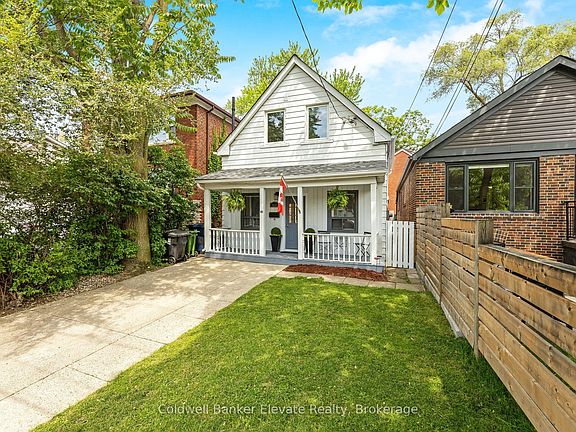 Who doesn't want to live in Bloor West Village! You are literally a stones throw away from incredible local restaurants, shopping, transit and some of the best schools in the city! With loads of charm, and a comfy cottage feel, this home will fit you like a glove! This fabulous 2 bedroom, 1 bath home has been extensively renovated and upgraded over the years and has been lovely maintained by its current owners. Carpet free (with the exception of the staircase), you'll love the unified Canadian oak hardwood throughout. The main living space is very open with plenty of windows which allow natural light to flood in. The kitchen is generously sized and has been updated over the years to make it a more modern bright space. The bathroom has recently gone thru a major renovation and feels very luxurious, you'll love the fixtures and cabinetry! Upgraded baseboards, pot-lights, professional electrical and plumbing updates, a newer roof, eavestroughs, upper windows, sliding door and just professionally painted throughout! Start your day with a warm beverage and feel the buzz of the neighbourhood on your front covered deck. The backyard is a quiet and private retreat surrounded by mature trees, pretty gardens and a poured concrete aggregate patio...the perfect place to unwind or entertain at the end of your busy day.