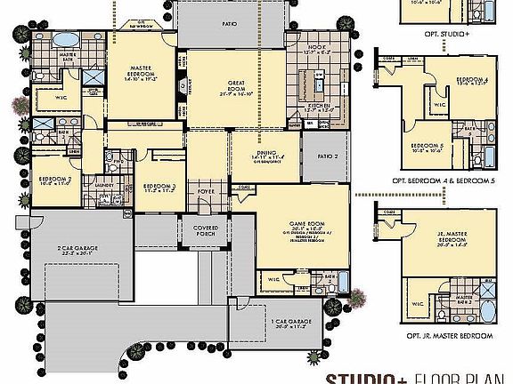 Plan 6 Features up to 4 bedrooms and 3.5 baths and a bonus room with the option to create a separate living area complete with kitchenette, living/dining area, private patio, separate entrance and full master suite.. Situated on a single-level, this progressive design is perfect for multigenerational living, additional rental income, a man-cave, or whatever you can image!