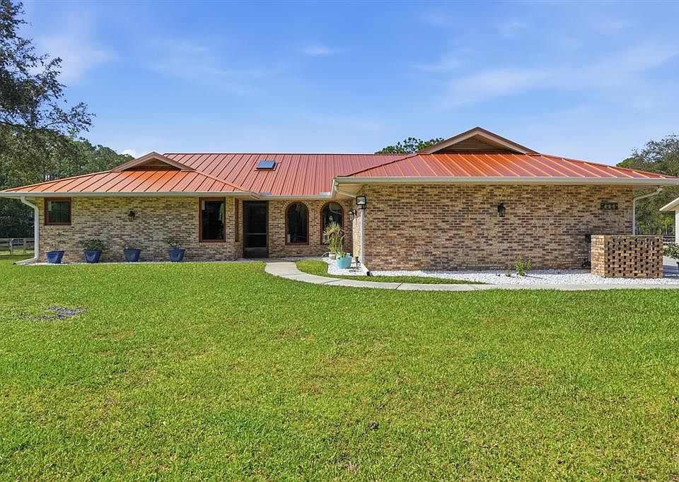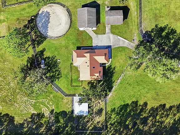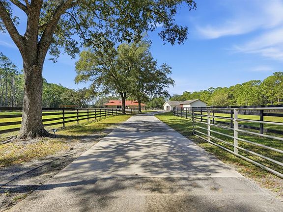 Bring your horses! This equestrian's dream home is truly TURN-KEY. On a private road in the highly sought out Spring Forest neighborhood, this 4 bedroom 2 bathroom with an oversized 2 car garage on 10 acres is everything you’ve been looking for. Upon walking in, you’ll immediately notice the natural lighting this home brings with BRAND NEW Anderson Windows held under a lifetime warranty with the home. A split floor plan allows for maximized space and comfortable living. The living room of the home offers an exceptional view of the barn, corral and arena - however, make no mistake - looking out of every window within the home, you're guaranteed an incredible view! The house is equipped with, fresh paint (interior and exterior in 2022), whirlpool gold series refrigerator, double oven and dishwasher. New light fixtures, gutters, porch screens, new laundry room cabinetry for storage and custom Mirasol Sheerview window shades. The screened in porch out back also includes a motorized remote porch shade which is warrantied as well. The 4th bedroom was converted into a california closet - keep it this way or easily convert it back to a 4th bedroom. New hand blown lights can be found in the foyer and kitchen sitting area. The home is ready for a whole home generator with an automatic transfer switch that was installed in 2022. A brand new RPS Copper GuardianRoof was installed in 2025 with a 50 year warranty will give you peace of mind for years to come. SkyFlex skylights, and a SkyFlex solar attic fan. The 50 year roof warranty includes yearly inspections AND post-hurricane inspections. The AC was installed in 2017 and has been serviced every 6 months and there is a termite bond maintained on the home. Stepping into the center aisle of your block built barn, you have 4 stalls equipped with floor mats, stall fans, windows out of the back of the stalls, and lighting. The barn, indoor wash rack and outdoor wash rack also have cold and hot water! A large tack room will allow for plenty of barn storage space! The barn and shed were also freshly painted in 2022. In 2024 the current homeowners brought in 36 loads of sand and dirt to build a riding arena and an 80' diameter round pen/corral, raised concrete wash rack which have electrical, fans and lighting. The property is surrounded by 4 rail fencing with multiple pastures sectioned off. On the opposite side of the property there are also two outdoor stalls on concrete also with water, electric, and fans. In the back of the property is a marksman range complete with a covered and screened in area set on pavers along with a fan to keep you out of the sun, providing comfort while you target practice. The only thing this property is missing is you - the rest has been done!