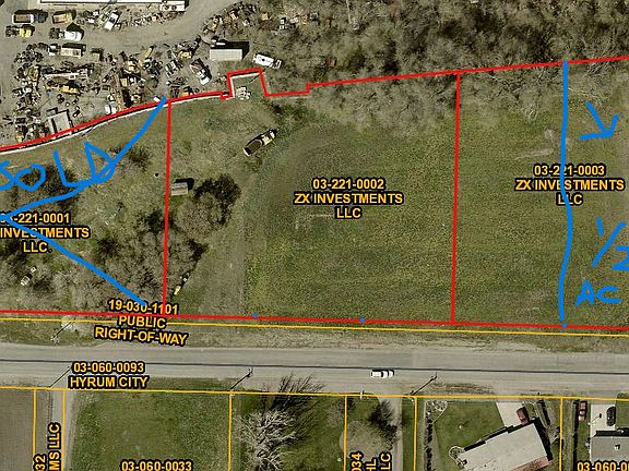Parcel subject to a lot-line adjustment to create an approx (.48) one-half acre buildable lot for $152,000. All of Parcel 3 (.96 acres) is available for $237,000. the APN # 03-221-0003. The full parcel is divisible into 2- lots per Hyrum City mini-subdivision guidelines. Able to be split in 2027. Additional land is available. Buyer to verify all information.