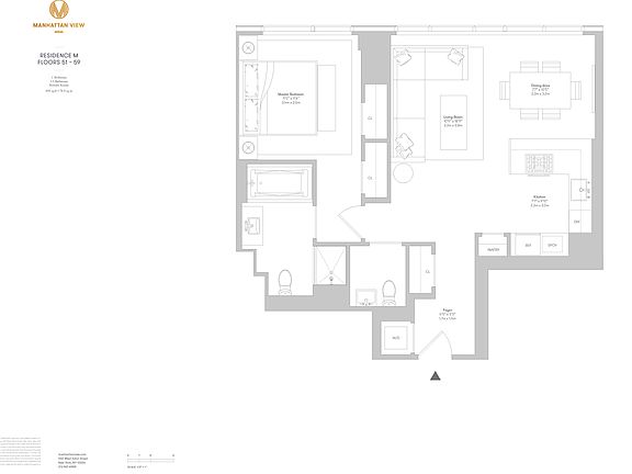 Manhattan View at MiMA is a LEED Gold-certified full-service condominium. Unit 55M is a one bedroom, one and a half baths, with impressive northern views through triple-glazed floor-to-ceiling windows which include Hudson River, George Washington Bridge, Time Warner Center, Intrepid Museum and cruise ships. The sleek contemporary Kitchen boasts custom designed white lacquer cabinets, waterfall-edge countertops and backsplash crafted from richly veined white Calacatta marble, premium appliances all by Gaggenau.