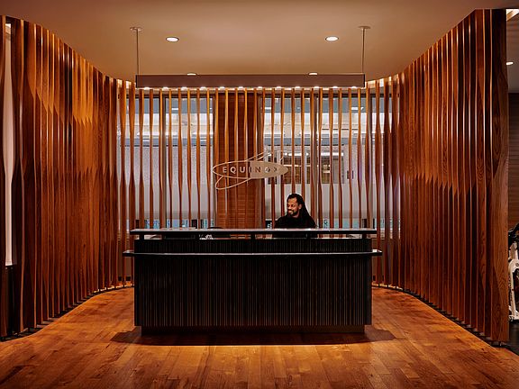 Enhancing your living experience is the exclusive M Club, offering an unparalleled 44,000 square feet of amenities. This includes an residents-only fitness center by Equinox with an indoor lap pool, training studio, and full-size basketball court. Residents also enjoy over 14,000 square feet of outdoor space across landscaped terraces featuring private dining pods and barbecue facilities. Additional amenities include party rooms with catering kitchens, a golf simulator, karaoke room, outdoor and indoor screening rooms, and a Mac Bar with iMac computers.