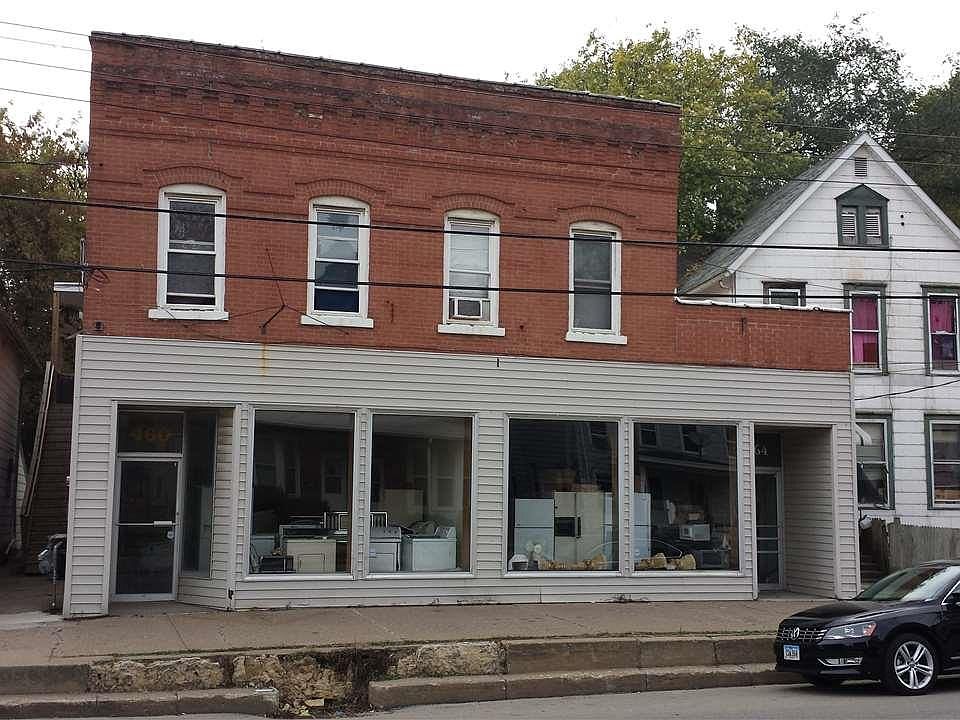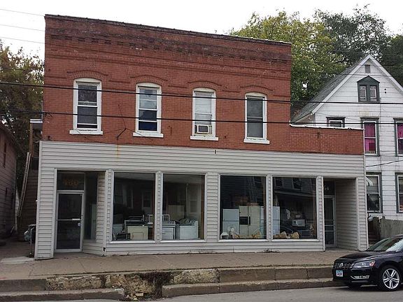 Main retail space has been gutted. Lots of potential, high ceilings. 1 apt behind building and 2 apts above. 2 commercial spaces on first floor, rented as one for $500 month. Owner pays water only. Parking behind building. Property Needs work.