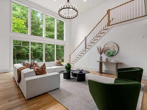 Fabulous architectural modern masterpiece in a private and peaceful setting off Weston Road in Wellesley. Open concept floor plan with an abundance of natural light from extensive windows that also allow for views of the private grounds. Chef's dream kitchen with top of the line appliances, quartz countertops, large center island and hidden butlers pantry with custom cabinets/shelving plus additional quartz countertops for extra storage or food preparation. Adjacent dining and family room with sleek impressive wet bar, second dishwasher and drinks fridge makes the entire open concept area perfect for entertaining. Master bedroom suite with luxurious bathroom and substantial walk in closet plus an additional 5 bedrooms and 5 full sparkling quartz bathrooms. Bonus finished basement with bedroom, full bathroom plus playroom area with additional wet bar and space for a gym. New Hardy School!