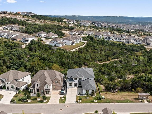 New roof installed in 2025 + Experience contemporary Elegance with Uninterrupted Views - This extraordinary Toll Brothers residence showcases thoughtful design and extensive upgrades throughout. Positioned against a permanent greenbelt, the property delivers panoramic views from multiple rooms. + The main level features an expansive primary suite designed for privacy and indulgence, with a spa-like bath offering a deep soaking tub, oversized walk-in shower, and custom dressing room that connects directly to a spacious laundry area. A secondary bedroom with its own en-suite bath and a custom-designed powder room also occupy the first floor. + Entertaining flows effortlessly thanks to two wine walls (one climate-controlled), a built-in bar, and a contemporary chef’s kitchen equipped with dual ovens, a five-burner cooktop, an oversized island, and generous counter and storage space. Upstairs, a large loft—already plumbed for an additional bar—sits beside a fully customized theater for true cinematic experiences at home. + The outdoor living spaces are equally impressive. Multiple terraces and an oversized spa take advantage of the protected green space beyond, ensuring unobstructed views across three levels – and from the spa. The outdoor kitchen completes the well thought-out space. + Residents of Travisso enjoy resort-style living with access to two premier amenity centers. The Palazzo Clubhouse offers a fitness center, resort pool with splash pad, lighted tennis courts, and playgrounds, while the new Forum Amenity Center features a lap pool, bocce and basketball courts, a recreational pond for kayaking, zip line, and indoor wellness spaces. Miles of hike-and-bike trails wind through parks and open green space, connecting neighbors to the outdoors. Just minutes from the Texas Hill Country, Travisso combines modern amenities with the natural beauty of one of Central Texas’ most scenic landscapes. + Travisso is zoned to the popular Leander ISD.
