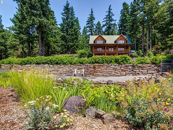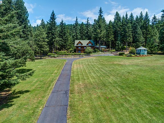 Rare opportunity to own two residences on 19 acres "up-the-valley"! Mt Hood views do not get better than this! Main house is a graceful log home, boasting 3 bed/3bath w/ 3412 sqft of living space. The 3 car garage is perfect for storing all your toys. Detached guest quarters w/ a half bath- ideal for visiting family. Care Taker's home is a 3bed/2bath manufactured home. All of this on a mixture of manicured lawn & park-like forest land!
