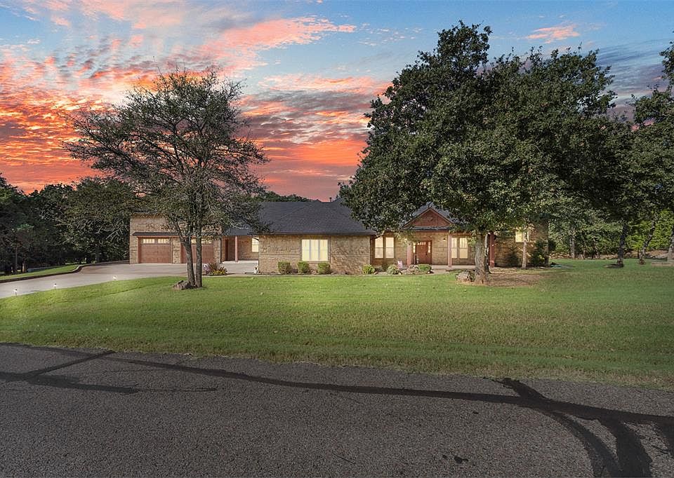 Built in 2011 and set on a peaceful, wooded lot, this single level luxury estate offers 3 spacious bedrooms plus a private office with full en suite bath, perfect as a 4th bedroom or nursery. Expansive picture windows line the back of the home, offering breathtaking views of Oklahoma sunsets, wildlife, and the tranquil koi pond complete with waterfall and fountain. This tranquil water feature makes the backyard feel like a private retreat.