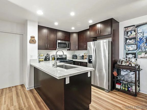 Discover unparalleled coastal living at 4600 Lamont St #127, a 1033 sq ft, 2-bed, 2-bath corner condo in vibrant Pacific Beach, San Diego. This is your invitation to a resort-style existence where luxury meets convenience. This meticulously upgraded condo offers an inviting layout. The gourmet kitchen is a showpiece with natural stone countertops and stainless steel appliances. Enjoy spa-like tranquility in bathrooms featuring dual vanities and custom tiled showers with custom glass doors. Recessed lighting and recessed mini splits provide year-round comfort and elegance. Your private patio offers a peaceful escape with convenient exterior access. The building recently underwent a comprehensive upgrade, enhancing your living experience. You'll also have the added convenience of two covered parking spots in a gated garage. Imagine strolling to the pristine sands of Pacific Beach, exploring a diverse culinary scene, or browsing charming local boutiques—all moments from your door. Pacific Beach is renowned for its vibrant energy, offering an endless array of opportunities for recreation and entertainment. This is your chance to embrace a highly desirable neighborhood that effortlessly blends urban excitement with an iconic beach atmosphere.null