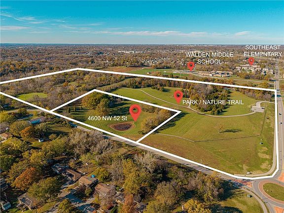 Own a piece of heaven in Kansas City, MO! A home on 5.2 M/L acres sitting on top of a hill with a pond down below. There are 112 acres of Parks and Recreation that wraps around the property, deemed to always be a nature park with walking trails and wildlife out your back door. You have access to 3 major highways that will take you most anywhere in the city within 15 to 20 minutes. The Park Hill School District is rated Triple A. Don't miss out on this rare find!