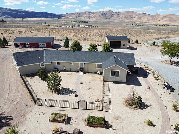 Located in the scenic Palomino Valley just minutes from Spanish Springs. The Desert Rose Ranch stands a notch above the rest. Entirely operational horse ranch with 40.13 acres of fully fenced property with room to accommodate your horses, animals and all of your toys. Surrounded by quiet farm land and ranches with breath taking views of the rolling mountain ranges and peaceful valley below. Local deer, wild horses and antelope roam the countryside freely., This home offers an open concept with updates throughout. Dedicated office area just off of the main entry. Large great room follows into the kitchen. Generously sized island with plenty of counter space and cabinet storage. Guest bathroom was beautifully remodeled with large walk in shower. The vaulted ceilings and abundance of natural light in the primary bedroom give it an open and bright feel. The bathroom features a jetted garden tub, his and hers sinks with remodeled walk in shower with an array of shower heads. Large unfinished basement. Ample storage space or a blank canvas to start a new project. The barn is a perfectly placed center piece for the property. Rubber pavers in main walkways. Tack room with plenty of storage space and shelving along with laundry area with washer and dryer. Feed storage room. Bathroom. Indoor/outdoor stalls all equipped with stall skin flooring, automatic waterers and lights. Two garages with the capacity to house up to 10 vehicles. Both garages have RV parking capacity. Bigger garage has pull through bay doors. Capable of housing two fifth wheels in large bay and traditional parking to the side. Either space could easily be used as a work shop, both have power. Horse training arena with pull in gate access. Gazebo with built in bbq and sitting area is the perfect place to enjoy the sunsets. Fenced in dog run. Tractor will stay with the sale of the property. Service records are available.