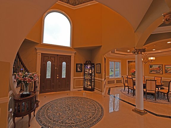 Enter through the iron gate and arrive at this stunning, expansive property set on 1.55 acres of lush land. The dramatic entrance includes a two-story marble foyer with deep tray ceiling, arch-top window, decorative moldings, and curved hardwood staircase with iron spindles. White columns with ornate golden capitals section off rooms throughout the open floor plan of the main level. Opposite the foyer is a gallery or sitting area with crystal chandelier, a perfect space to welcome your guests when you entertain. Off the foyer, the dining and living areas flank the corridor, offering lit wall niches to display plants or sculptures, a marble fireplace, and natural light from multiple windows. The generous kitchen and breakfast area boast granite counters, high-end, stainless steel appliances, a large island with storage, and a six-burner gas cooktop. Enjoy meals in front of the fireplace as you overlook the backyard, or step onto the southern-facing, brick paver patio and dine al fresco in complete privacy. You will definitely want to host a summer soir~e or two in this fabulous outdoor space! At the east end of the main level are a laundry room and a breezeway to the 3-car garage. On the other side of the foyer, the powder room has a vessel sink atop a marble pedestal, and crystal sconces. Your own bar/lounge awaits, with plenty of seating for your guests. There's a convenient, private suite for overnight visitors, in-laws, an au pair, or maid's quarters. Upstairs, the hallway overlooks the main level below, contributing to the bright, spacious feeling of this home. There are five generous bedrooms and three full baths with double sinks. The owner's suite is full of windows, with a ceiling fan, recessed lights, and tray ceiling. Luxuriate in the marble bathroom with soaking tub and stall shower, primp in the vanity area, and store your current and off-season clothes in the extra-large, two-room walk-in closet with island dresser.This deluxe property is convenient to parks, country clubs, Lake Frank, and places of worship. Live, love, and entertain in grandeur at Sycamore Acres.
