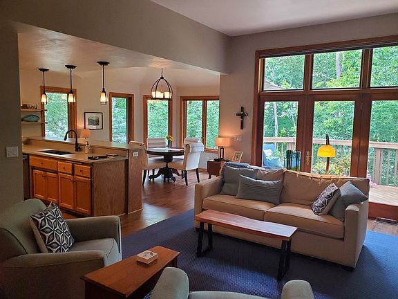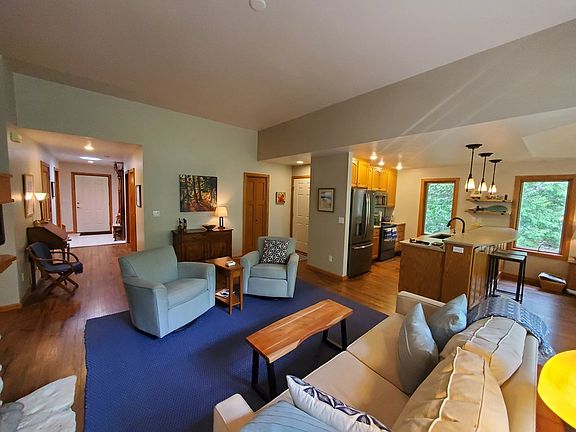 Downsize without losing entertaining space! This unit has been beautifully updated so you can move right in. Main floor living has everything you need with the added bonus of tons of guest space on the lower level. Tucked away in the tree tops overlooking rolling hills and a peak of hole 10 of Cherry Hills Golf Course.. Tons of natural light and outdoor entertaining space as well. Easy access to Sturgeon Bay and Northern Door. High speed internet and second floor office offers a work from home option. Sellers would be willing (but do not require) to rent back while they build their home. Virtual tour available.