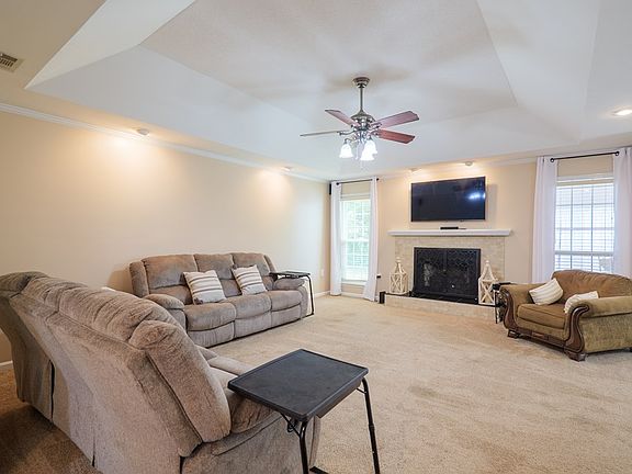 Nestled in a quiet cul-de-sac within the desirable Foxborough neighborhood, this beautiful 4-bedroom, 2-bath home offers a spacious and thoughtfully designed layout ideal for comfortable living. Upon entry, you're welcomed into a warm and inviting living room perfect for relaxing or entertaining. The kitchen includes a bar for additional seating and connects seamlessly to a generous dining area, providing ample space for gatherings. A bright sunroom just off the dining area is surrounded by windows and leads out to an open back porch—perfect for outdoor seating or a swing. The fully fenced backyard offers excellent privacy, a potential fire pit area, and a convenient storage shed. The primary suite serves as a private retreat with an en-suite bath that includes dual vanities, a walk-in shower, and a soaking tub. Three additional bedrooms share a well-appointed full bath, and a versatile bonus room provides flexible space for a home office, playroom, or guest area. This home presents an exceptional opportunity to own in one of the area's most sought-after communities. Schedule your private showing today.