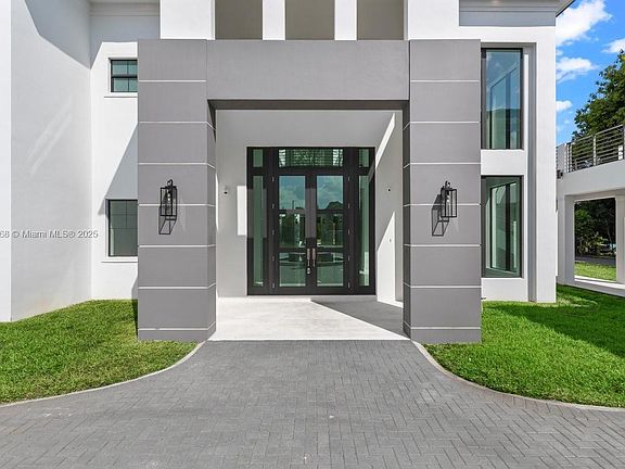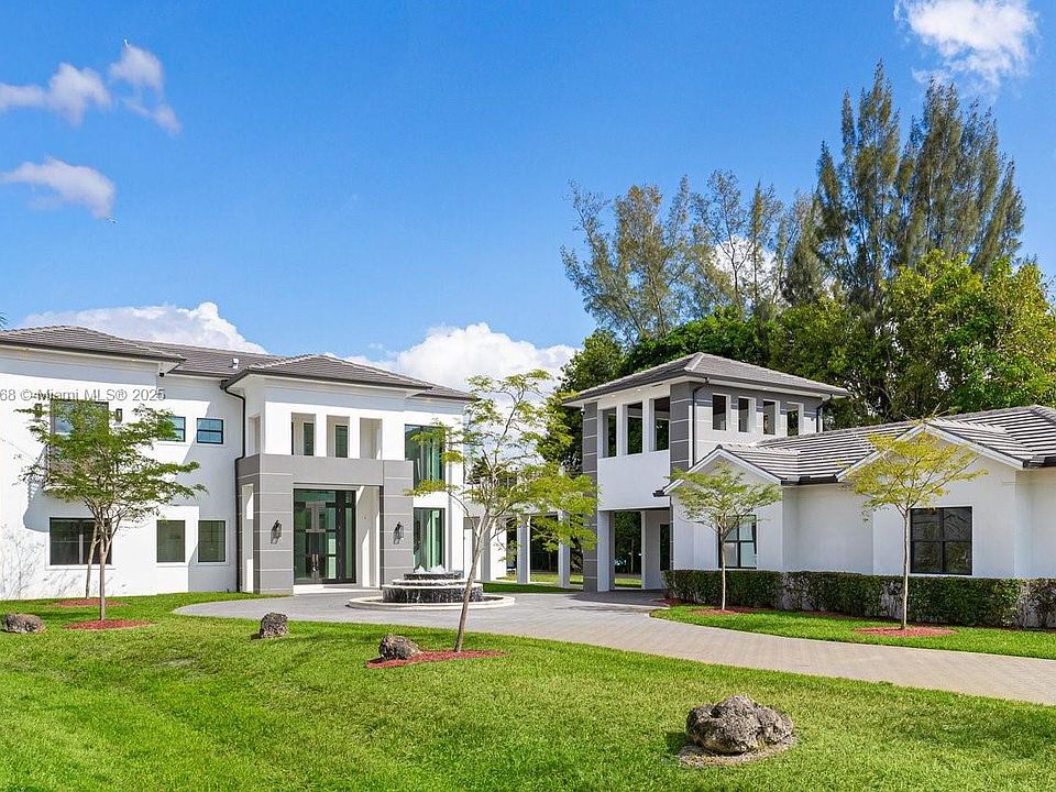 Magnificent Estate in the highly desirable Southwest Ranches. This 12,000+ SF contemporary masterpiece on 1.33 acres offers 7 en-suite bedrooms, 8.5 baths, a private detached guest house, theater room, plus an office, marble staircase, pool & spa, and interior commercial-grade elevator. At its heart, an indoor courtyard with a glass skylight showcases a stunning 20’+ Regal Palm. Beautiful chef’s kitchen boasts solid stone finishes, top-tier appliances, a butler's kitchen, and a walk-in pantry. Designed for entertaining, with a resort-style freeform pool featuring a beach entry and swim-up bar facing the fully equipped summer kitchen. A 4-car garage provides ample space, while gated entry and advanced security ensures privacy. A true blend of modern elegance and resort-style living.