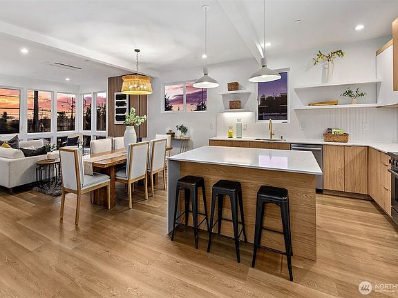 Welcome to Neoteric Homes newest project in the heart of the Seaview Neighborhood. Essentially 3 stand alone units in this small HOA. Only 1 garage common wall separates the SFR from the ADU. Designed with privacy in mind. Large private & fully fenced yard. Oversized 1 car attached garage w/ EV prewire. 2 beds plus full bath on lower level.Gourmet kitchen w/eating island that opens to dining & living area. Primary suite & bath along with 4th bed & bath on upper level.Private roof top deck, w/views of the Puget Sound. Lots of windows on all 3 levels provide extensive natural light year around.Located between the Alaska & Morgan Junctions, great for shopping & eateries. Just minutes to the WS Bridge which is the gateway to all major freeways.