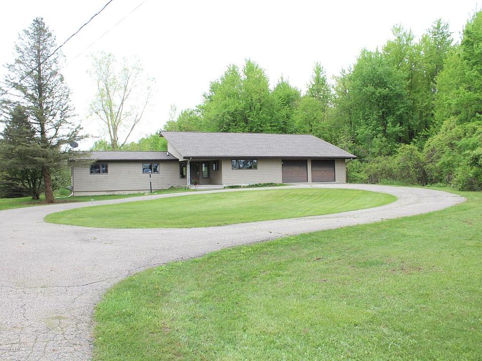 Bath township on 14.5 acres+- ! Picturesque setting with plenty of trees and privacy! Rectangular shaped parcel with small ponds. Nicely positioned back off the road for comfort and privacy! Circle drive is a huge attractive feature! Contemporary design with an open feel to kitchen and living room areas. South facing windows for property views and a lofted area for even scenic overlook opportunities. Bonus room offers additional living space. Walkout lower level (unfinished). First floor laundry! A 2nd storage garage in lower level. A/C. 2 ponds on property. Newer roof. Great open and spacious feel, this home is just waiting for your personal touch and upgrades! Property will be newly surveyed and is on the natural gas line for fuel. Must see this new offering!Sub. to Twp. approval on boundary adjustment and survey.