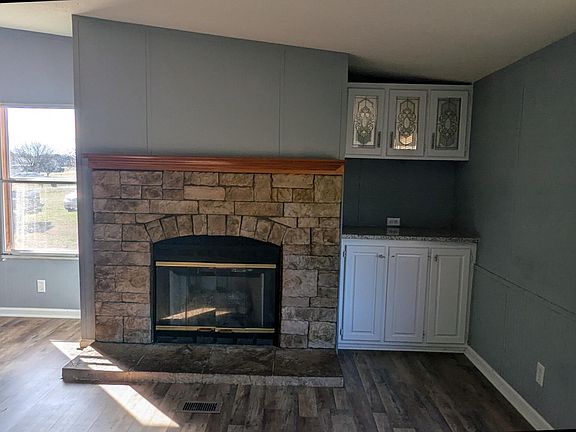 This home offers a spacious corner lot and a split bedroom floor plan. The kitchen features granite counter-tops and plenty of cabinets for storage. In the family room, there is built-in storage next to the fireplace.