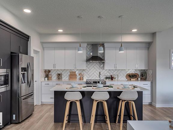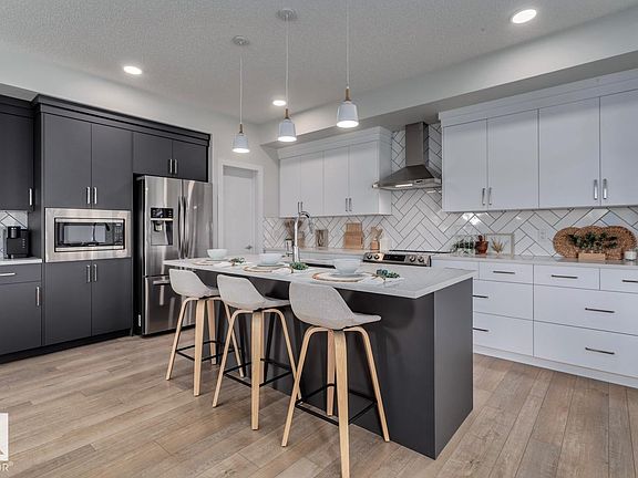 THIS IS THE HOME YOU HAVE BEEN WAITING FOR! Located in the desired community of Ruisseau, this OUTSTANDING Look Master Builder Showhome provides over 2,160 sf. of UPGRADED family living. Providing a view to the pond and siding onto a walking path, the home features an open plan with numerous windows that flood the living area with light! Other highlights include an IMPRESSIVE kitchen with a center island/breakfast bar, Quartz counters, a canopy hood fan with herringbone pattern backsplash, a generous eating area with corner windows, the main floor den/flex room, a rear mud-room, and a great Family Room with windows on each side of the fireplace. The upper level features a functional Bonus Room, the washer/dryer, 2 bedrooms PLUS...a HUGE Master Bedroom with a RAISED sitting area and a luxury ensuite! The home gets better with Central A/C, LVP flooring, and ALL landscaping and fencing is complete. In a GREAT Beaumont location, all you need to do is move in and Enjoy your NEW HOME!