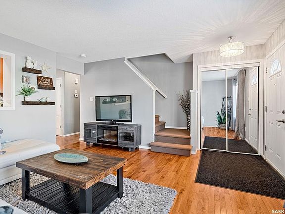 This beautifully maintained townhouse, located in the highly sought-after Lakeridge area in Regina’s north end, offers the perfect blend of comfort, style, and convenience with close proximity to shopping, restaurants, grocery stores, schools, walking paths, and public transit. The welcoming main floor features a bright and spacious living room filled with natural light and accented by hardwood floors, creating a warm and inviting atmosphere. A thoughtfully designed wall cut-out between the living room and kitchen enhances the flow of light while maintaining defined spaces, offering the ideal layout for both everyday living and entertaining. The generous kitchen and dining area provide plenty of counter space, updated flooring, and direct access to your private patio, which opens onto a peaceful common green space—perfect for morning coffee or evening relaxation. A convenient half bathroom completes the main floor. Upstairs, you’ll find two large bedrooms with ample closet space and a nicely updated 3-piece bathroom. The fully finished basement offers even more living space with a spacious recreation room, additional storage, and a modern 3-piece bathroom, making it perfect for guests or a cozy retreat. With tasteful updates throughout and pride of ownership evident at every turn, this townhouse feels more like a single-family home and is completely move-in ready for its next owner.