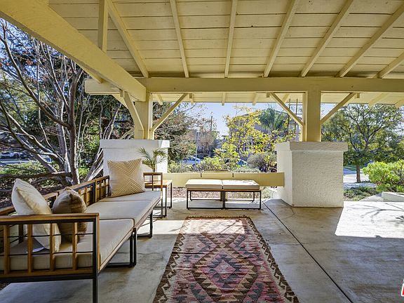 This charming 1911 California Bungalow, perfectly situated on a large corner lot, offers more than meets the eye. Step onto the elegant wrap-around porch, where you can unwind and soak in the beauty of the native front yard garden. Head inside, where you'll find a large living room with decorative fireplace, formal dining room, and a unique glass ceiling atrium. The home features two sun-filled bedrooms downstairs, while the large second-floor primary suite offers a peaceful retreat with serene views. The two-car garage has been split into a bonus office space and a one-car garage with extra storage. This home beautifully combines vintage character, including wood windows and wood floors, with modern comforts, and a perfect blend of the classic California indoor/outdoor living. Located in the heart of Los Feliz, between Vermont and Hillhurst, you'll enjoy easy access to a variety of restaurants and amenities.