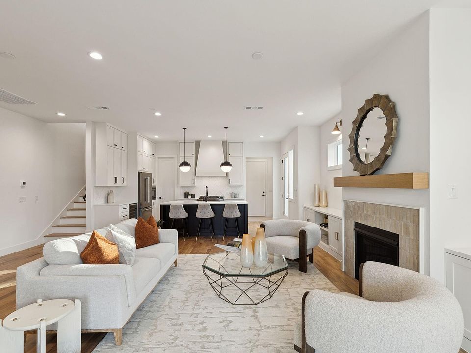 Clean linesOpen floor planOversized covered patioHigh-end finishesCustom built-insDesignated studyBlack windows