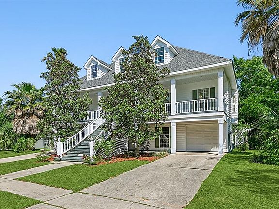 Located in a must see to believe waterfront community just 25 minutes from downtown New Orleans and 26 minutes from Slidell, this property offers the perfect mix of tranquility and accessibility. This carefully cared for Venetian Isles home is situated on two lots with a huge deck, an updated seawall, a boat lift and docking area - you are literally moments to Lake Borgne and the Intracoastal Waterway from this deck. Tremendous fishing, bird watching, kayaking and more, at your door step. This raised Acadian home features oak hardwood floors in the living spaces and stairway, three bedrooms, three and a half bathrooms (two with bathtubs), a sprawling kitchen in the main living space, and another kitchen downstairs facing the covered patio, deck, and water view from every room. Lower level also features a woodworking shop, multiple covered secured parking spaces and a pull thru garage. High-end updated stainless steel appliances including a smart fridge, Thermador gas range & dishwasher, a microwave and smart washer and dryer included with the sale. Electric elevator lift opens inside the home for easy living, has a 500 pound cargo rating. Yard is plush and includes fig, pomegranate, grapefruit and pear trees, grape vines, two rose arbors, and jasmine plantings. Multiple off street parking spots, updated furnace and HVAC, new energy efficient windows - come check this paradise out!