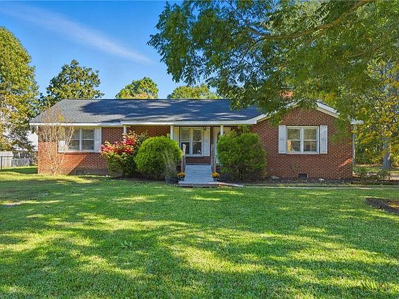 **Open House: Sat, Oct 25/11am-1pm.** Welcome Home! Check out this spacious 4-bed, 2-bath brick ranch w/ a sunroom on a full acre in Western Branch! This home blends modern updates w/ timeless character. Recent improvements include: new roof, new HVAC, updated plumbing, new appliances, & connection to city water/sewer for peace of mind. Inside features freshly painted interiors, a cozy stone fireplace, & classic tile baths ready for your personal touch. Don’t miss the hidden gun display cabinet! Detached 2-car garage includes a finished upstairs suite w/ full bath & kitchenette. Great for guests, in-laws, or home office. Large metal hangar-style workshop w/ power adds endless potential for storage, hobbies, or small business use. Enjoy one-level living, major system updates, and plenty of space to make it your own. Some photos virtually staged.